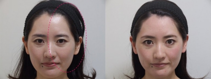 小顔矯正効果 点線で囲んだ部分が傾いている側です