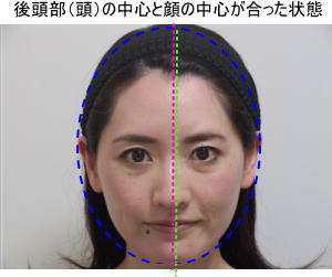 中心線がまっすぐに引かれた球体の左右は対象ですが、中心線がずれると顔の左右非対称になります。(図参照)